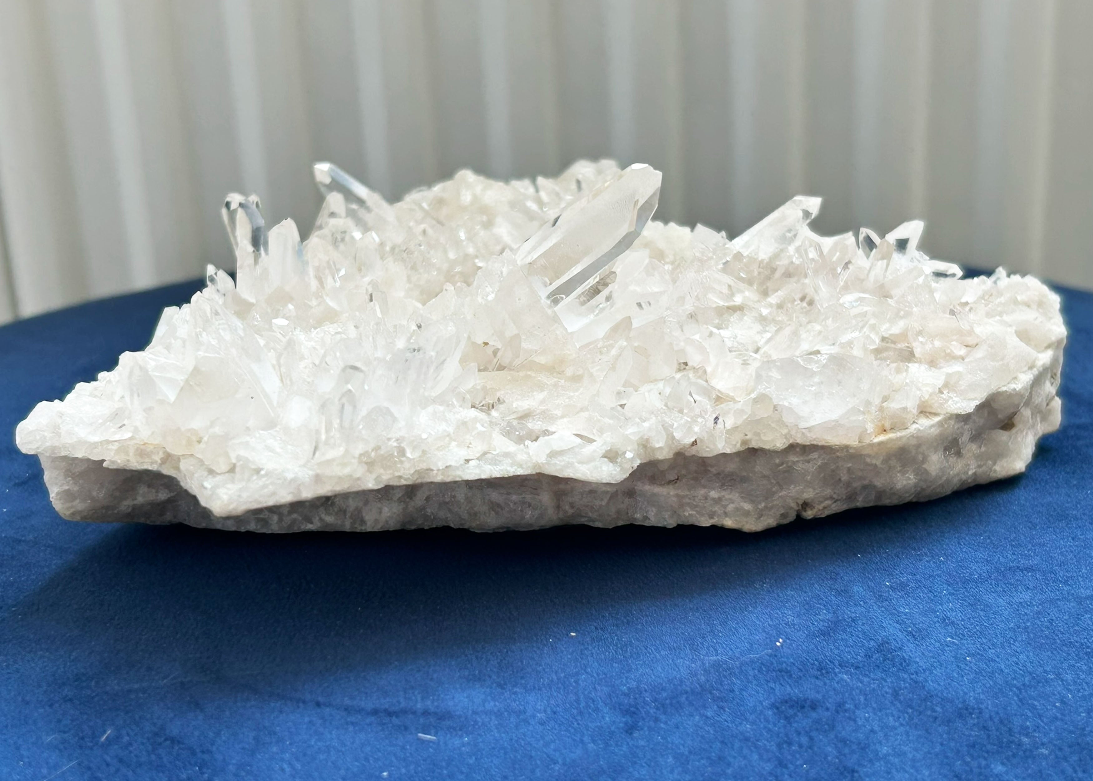 Clear quartz (also known as rock crystal) was believed for centuries by the Greeks to be deeply frozen ice that would never thaw.  It forms naturally in clusters of many crystals of varying size.