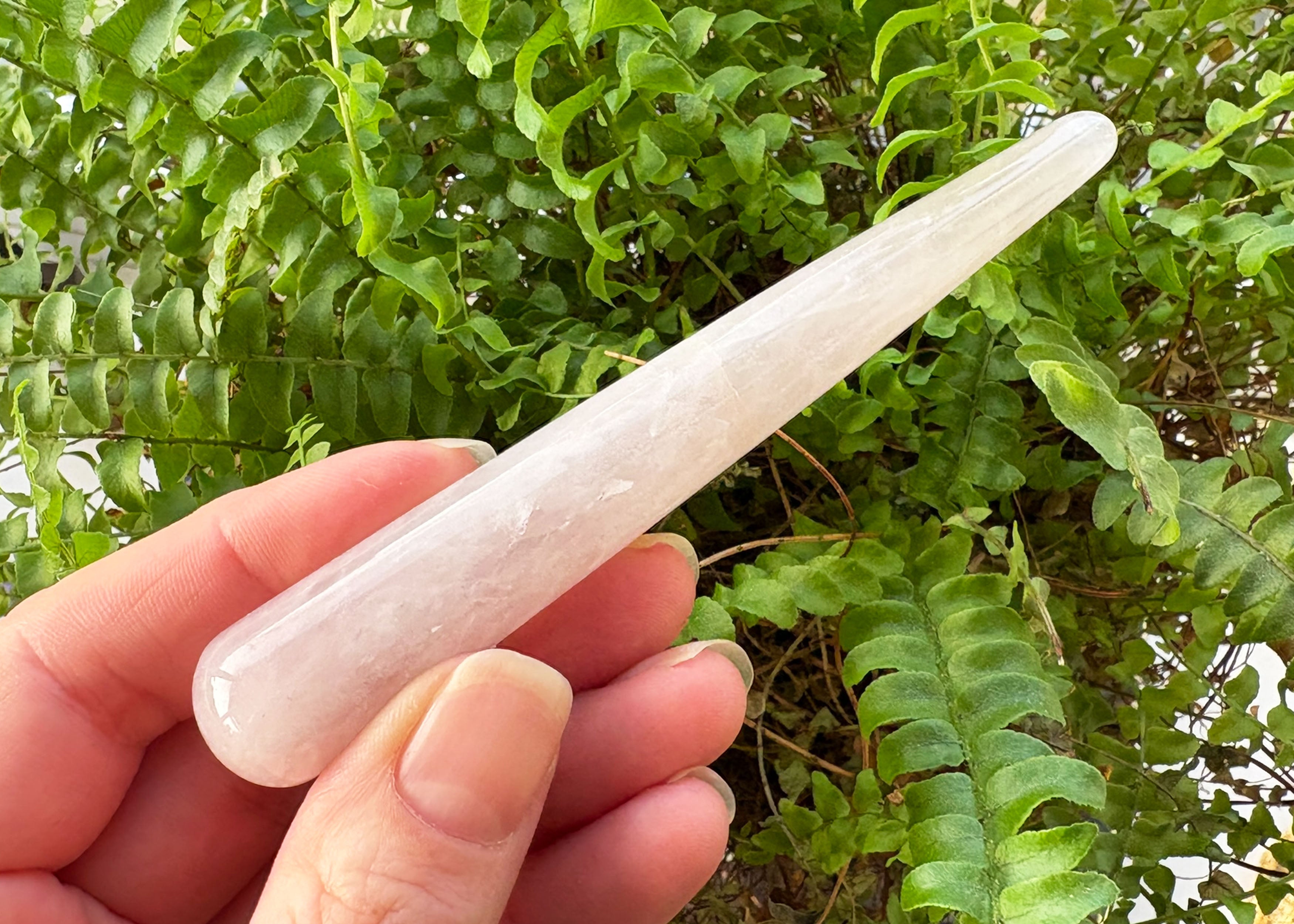 Crystal wands are solid and firm for massaging directly onto the body. The crystal stimulation benefits the physical body, releasing any tension and putting in the soothing energy of the crystal. You can use the smaller end for more intensity and the larger end for more relaxation. Crystal wands are great for self-massage and massage on others.