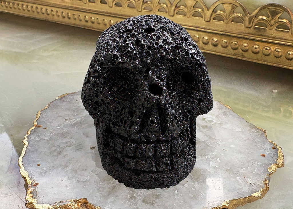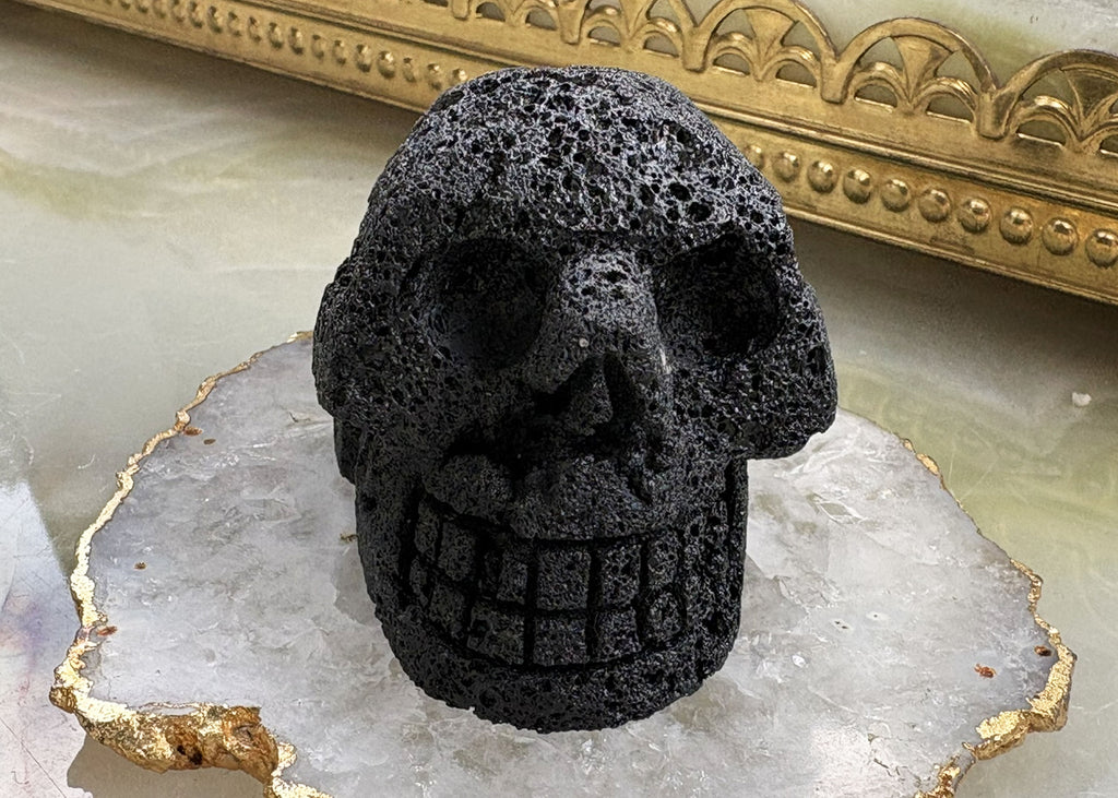 Large Lava Stone Skull Carving