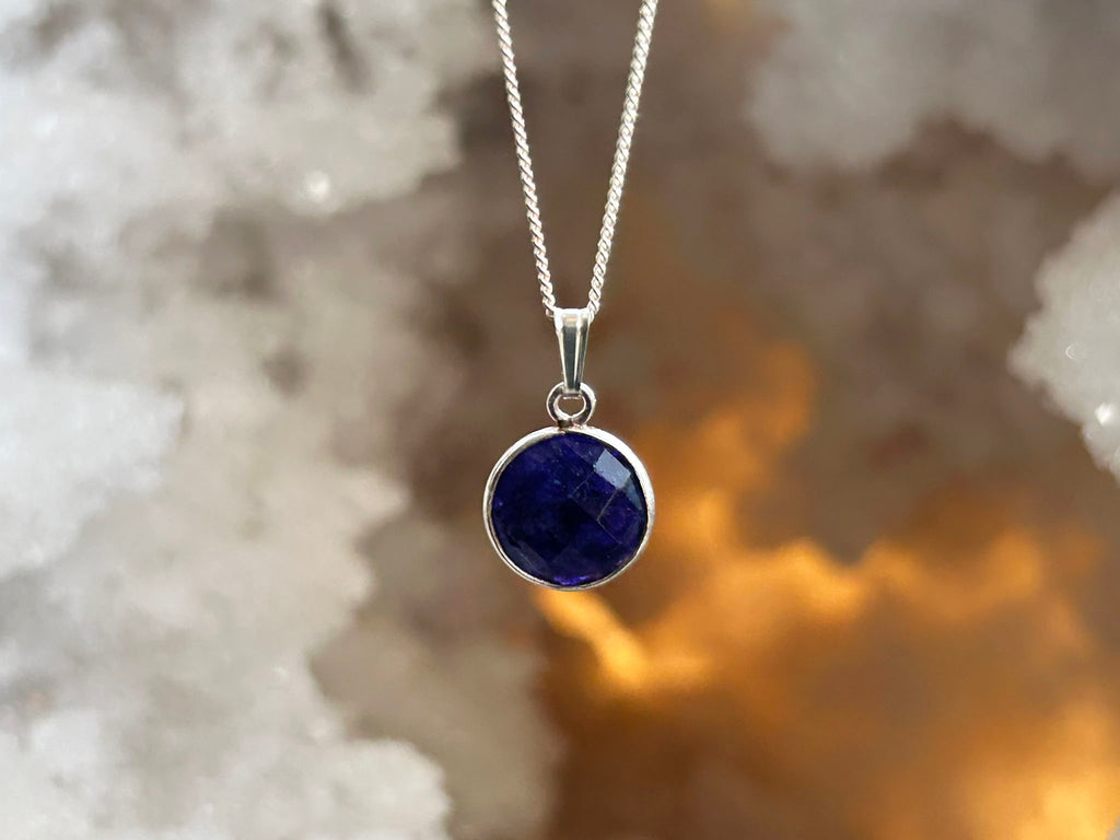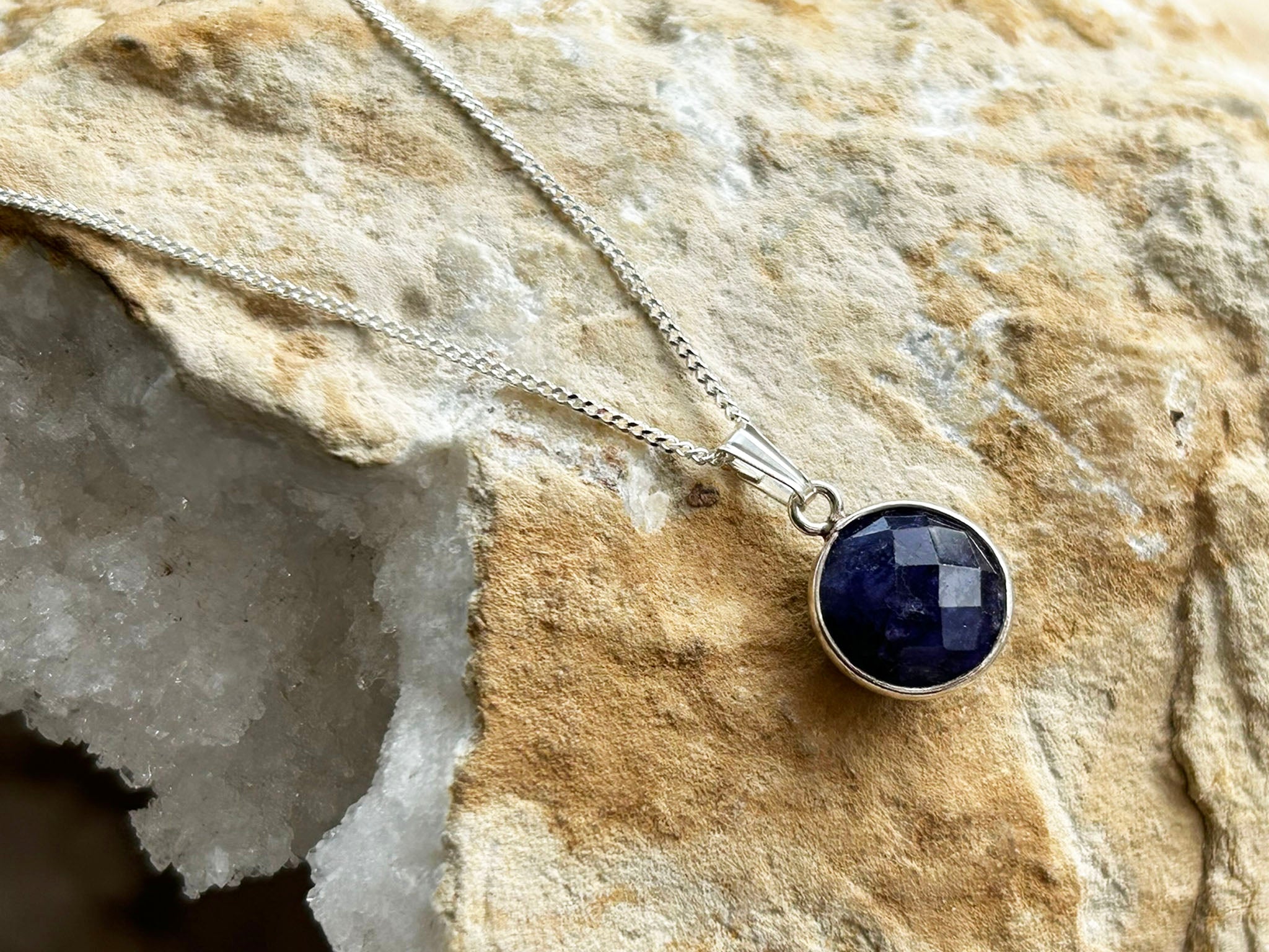 Faceted Sapphire Cabochon Sterling Silver Necklace